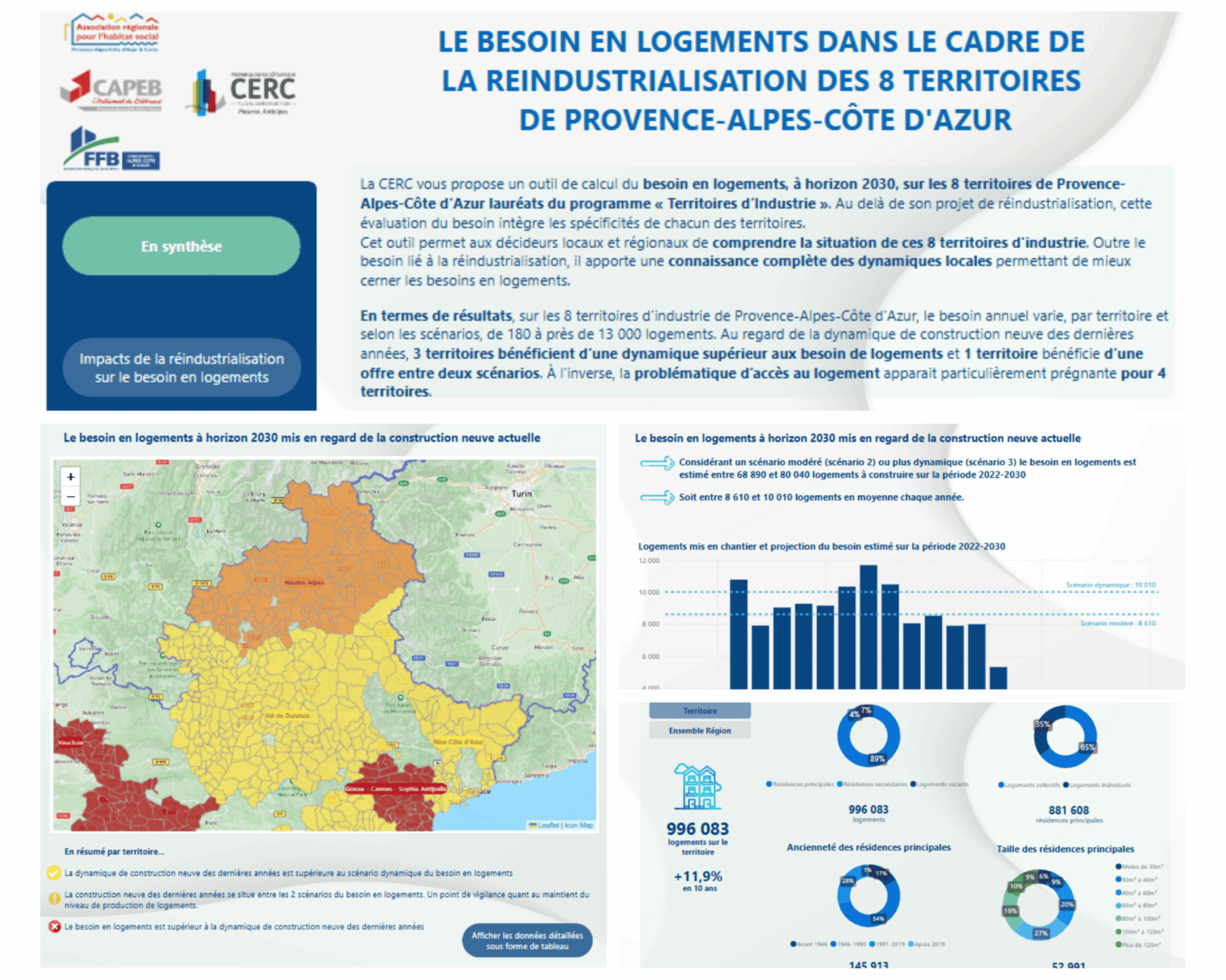 La publication met à disposition des décideurs locaux et régionaux une note de synthèse claire et opérationnelle, offrant une lecture des enjeux logement à l’échelle des territoires d’industrie. Elle s’accompagne d’un outil de datavisualisation interactif développé par la CERC, permettant d’explorer les dynamiques locales et de mieux identifier les besoins en logements à l’horizon 2030.